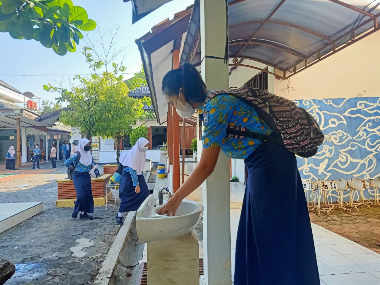 “Sekolah harus memperhatikan lingkungannya benar-benar bersih, seperti toilet bersih, sarana cuci tangan menggunakan sabun dengan air mengalir dan handsanitizer di setiap kelas, penyemprotan cairan disinfektan di setiap ruangan sebelum pertemuan tatap muka dilaksanakan,” tutur Wahyu.