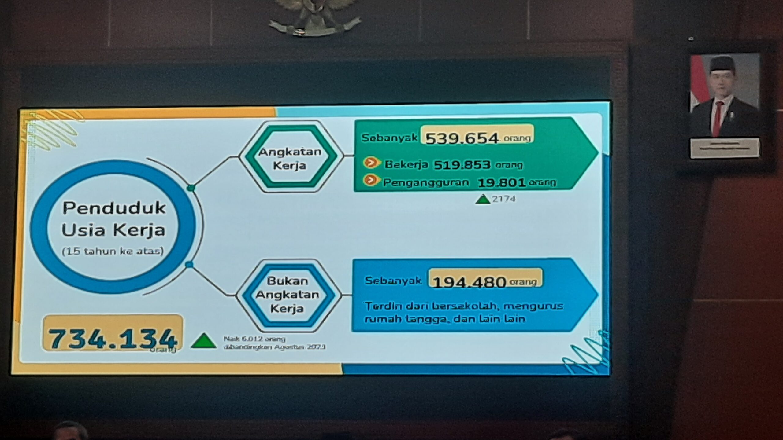 Sedangkan untuk angkatan kerja, jumlahnya mencapai 539.654 orang. Dengan rincian 519.853 orang menyandang status bekerja, dan 19.801 orang menyandang status pengangguran.