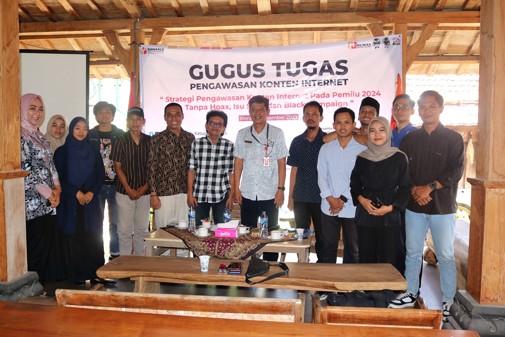 “Saat ini dunia maya digunakan sebagai sarana berkampanye oleh peserta pemilu. Media sosial dipenuhi dengan aktivitas kampanye dan ajakan memilih. Hal ini tentunya akan menjadi potensi penyebaran hoax maupun kampanye hitam.” Jelas Koordinator Divisi Hukum dan Penyelesaian Sengketa Bawaslu Kabupaten Blora, Lulus Mariyonan saat menggelar Rapat Koordinasi Gugus Tugas Pengawasan Konten Internet di Warung Joglo Kauman, Blora, Jawa Tengah, Kamis (14/12/2023).
