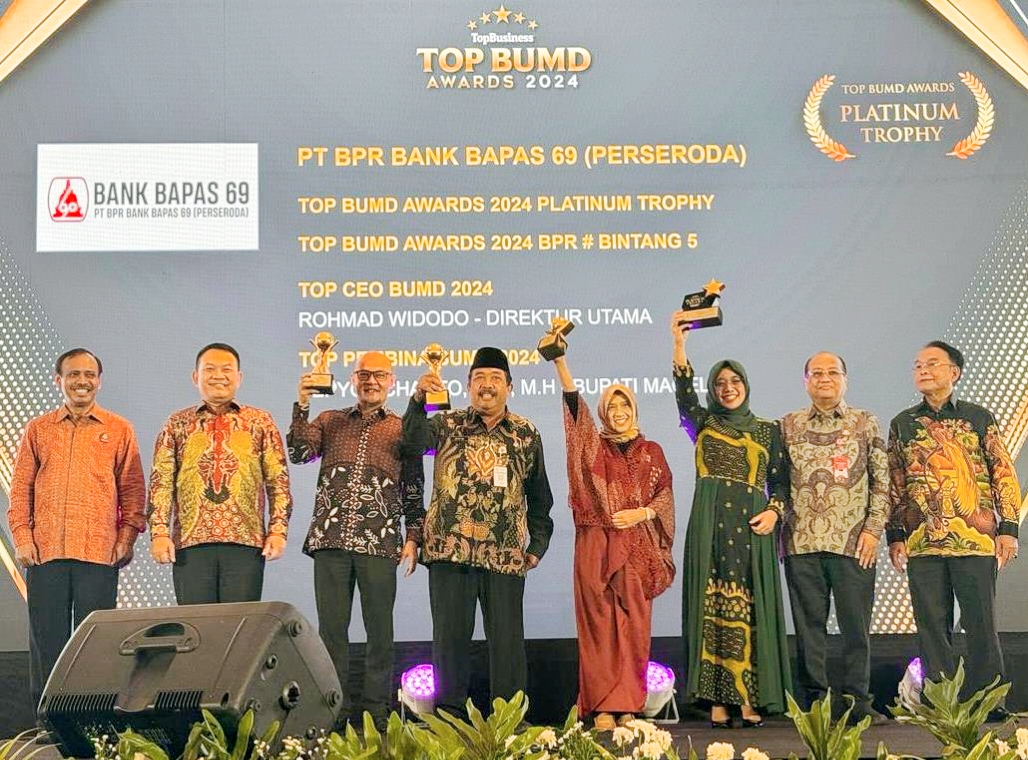 Tahun 2024 ini, Bank Bapas 69 kembali berhasil meraih penghargaan dalam TOP BUMD Award Tahun 2024 yang diselenggarakan oleh Majalah Top Business bekerja sama dengan Institut Otonomi Daerah (I-OTDA) di Hotel Raffles Jakarta, Rabu (20/03/2024).