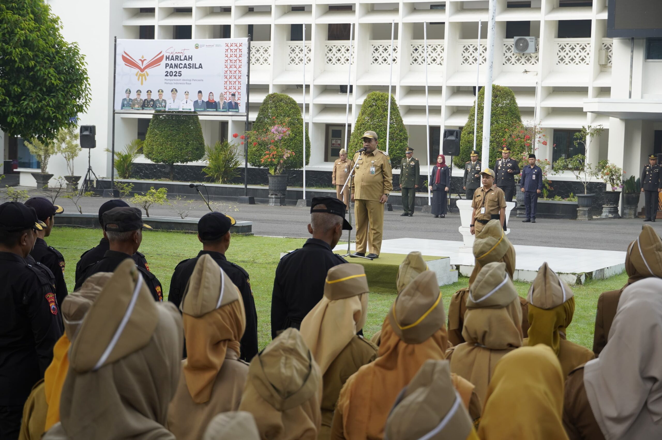 Dalam kesempatan tersebut, Bupati membacakan Pidato Kepala Badan Pembinaan Ideologi Pancasila (BPIP) Republik Indonesia pada Upacara Peringatan Hari Lahir Pancasila tahun 2025.