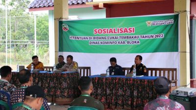 Sosialisasi Ketentuan Bidang Cukai Tembakau (DBH CHT) Tahun 2022 diselenggarakan Kantor Pengawasan dan Pelayanan Bea dan Cukai (KPPBC) Tipe Madya Kudus bekerja sama dengan Dinas Komunikasi dan Infomatika Kabupaten (Dinkominfo) Kabupaten Blora.
