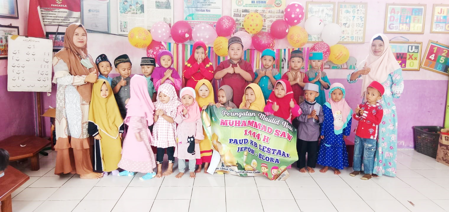 BLORA (beritaku.net) – Kelompok Bermain (KB) Lestari JPN Jepon Kabupaten blora, Jawa Tengah mengadakan peringatan Maulid Nabi Muhammad SAW yang diikuti warga sekolah, Rabu (12/10/2022).
