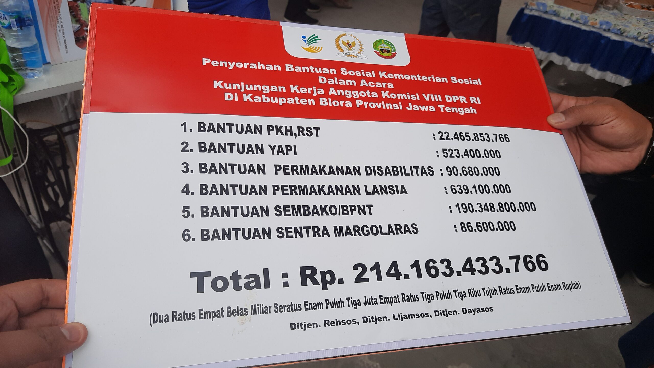 Anggota Komisi VIII DPR RI, Sri Wulan mengatakan bantuan senilai ratusan miliar rupiah tersebut diberikan bagi masyarakat Blora terutama penyandang disabilitas, dan kurang mampu.