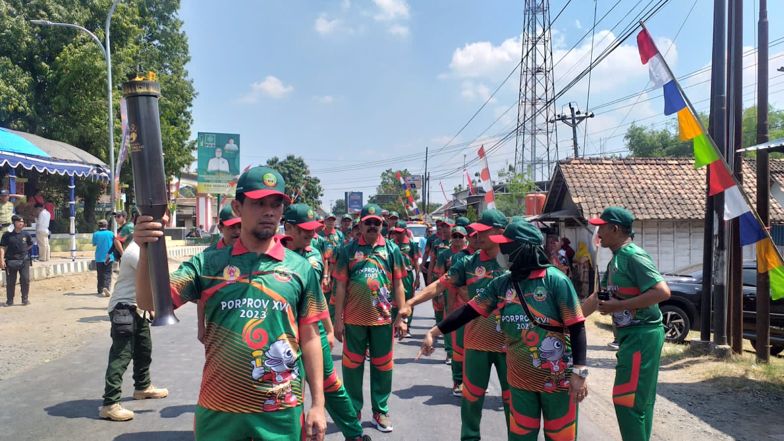 Kegiatan kirab api Porprov Jateng XVI di Blora juga berlangsung meriah.