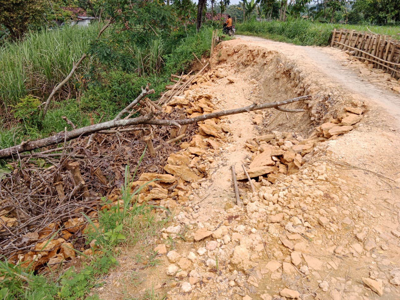 “Untuk kondisi sekarang akses jalan sudah ambles dan bahu bahu jalan,sekarang sudah longsor yang lebar, kami kawatirkan jika tidak segera dapat bantuan atau perhatian dari pemerintah,akan terlalu parah dan mengakibatkan putus total,” kata dia.