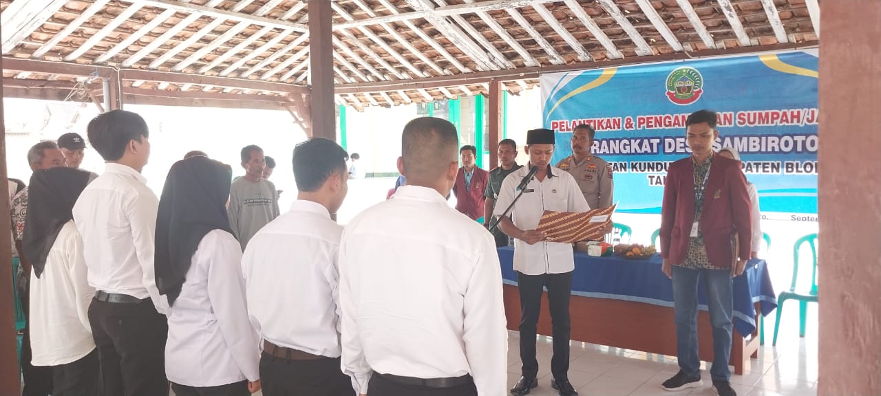 BLORA (beritaku.net) | Pemerintah Desa Sambiroto Mengadakan Acara Pengambilan Sumpah jabatan dan Pelantikan Perangkat Desa sebagai Sekretaris Desa, saksi pelayanan, Kasi Keuangan, 2 kepala dusun dan , Kegiatan tersebut dilaksanakan Di Balai Desa Sambiroto, kecamatan Kunduran, Kabupaten Blora, Rabu, (13/9/23).