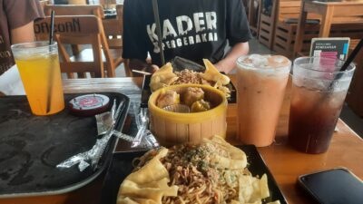 Sembari pesanan datang, kami mengobrol banyak hal, melihat kondisi tempat makan tersebut yang memang ramai sekali. Hampir semua golongan usia, dari usia anak-anak sampai lanjut usia, dari pegawai negeri sampai swasta tampak menikmati tempat makan kekinian yang ada di sini.