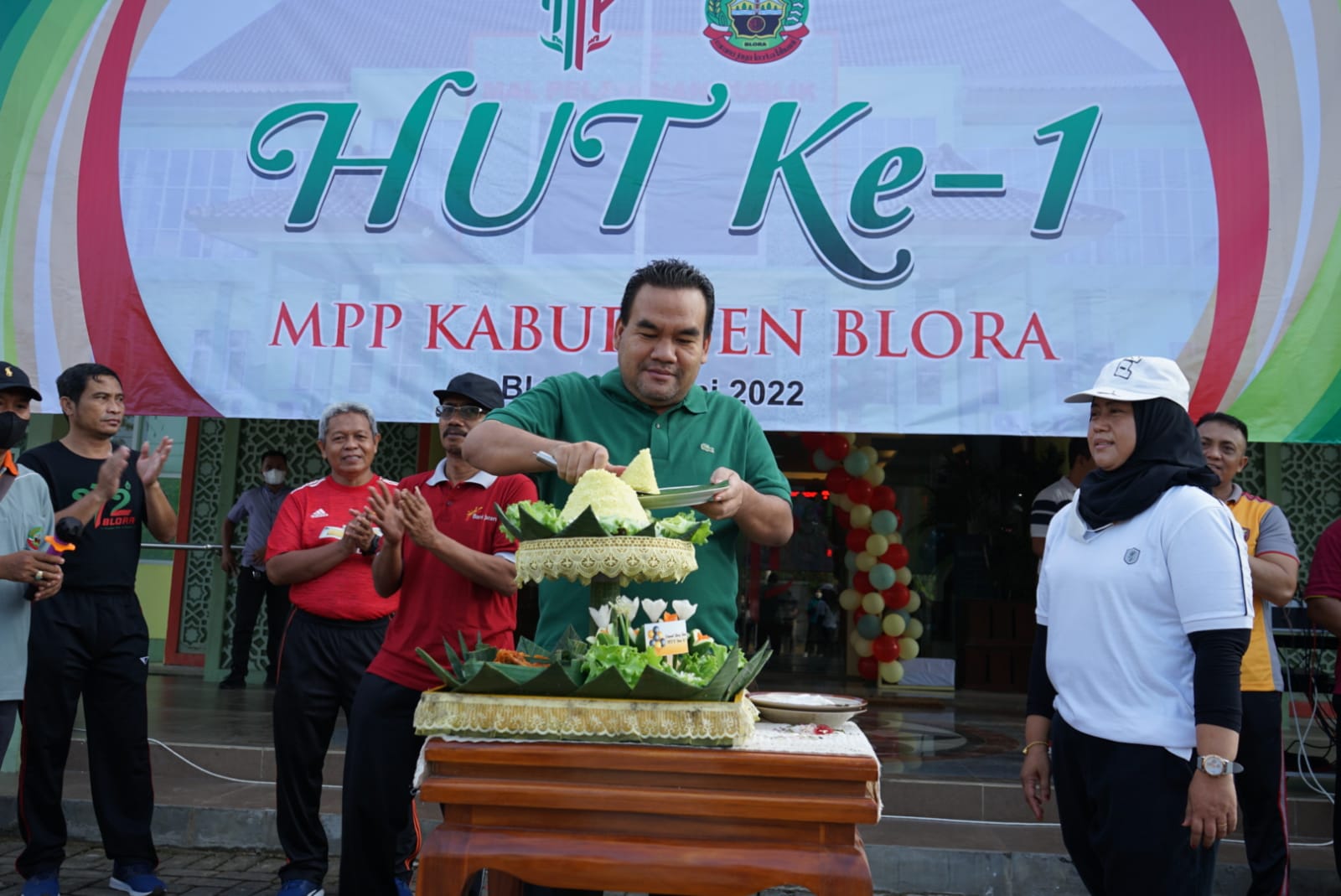 “Tidak terasa MPP yang kita bangun bersama ini sudah berusia satu tahun. Diusianya yang baru satu tahun MPP Blora masih jauh dari kata sempurna dan masih butuh pembenahan, perbaikan dan penyempurnaan,” terang Bupati Blora, Arief Rohman saat menggelar peringatan Hari Ulang Tahun (HUT) perdana di halaman Gedung MPP, Jum’at (03/06/2022).
