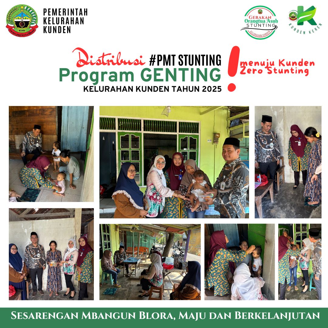 BERITAKU.NET – Kelurahan Kunden, Kecamatan Blora, Kabupaten Blora, Jawa Tengah, mendistribusikan Pemberian Makanan Tambahan (PMT) untuk anak stunting dan ibu hamil kekurangan energi kronis (KEK) pada hari Kamis, (12/6/2025).