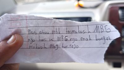 Surat kecil tersebut diberikan setelah jam makan siang. Ungkapan tulus itu membuat para petugas dapur tersenyum bangga. Respons positif dari siswa menjadi bukti bahwa program MBG benar-benar memberi manfaat bagi peserta didik.