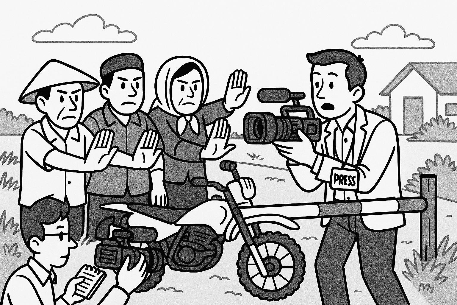 “Polisi harusnya memberikan pemahaman kepada warga kalau sampai menghalangi wartawan bisa dipidana penjara. Bukan malah polisi suruh wartawan untuk berkomunikasi langsung dengan warga setempat,” ujarnya geram.